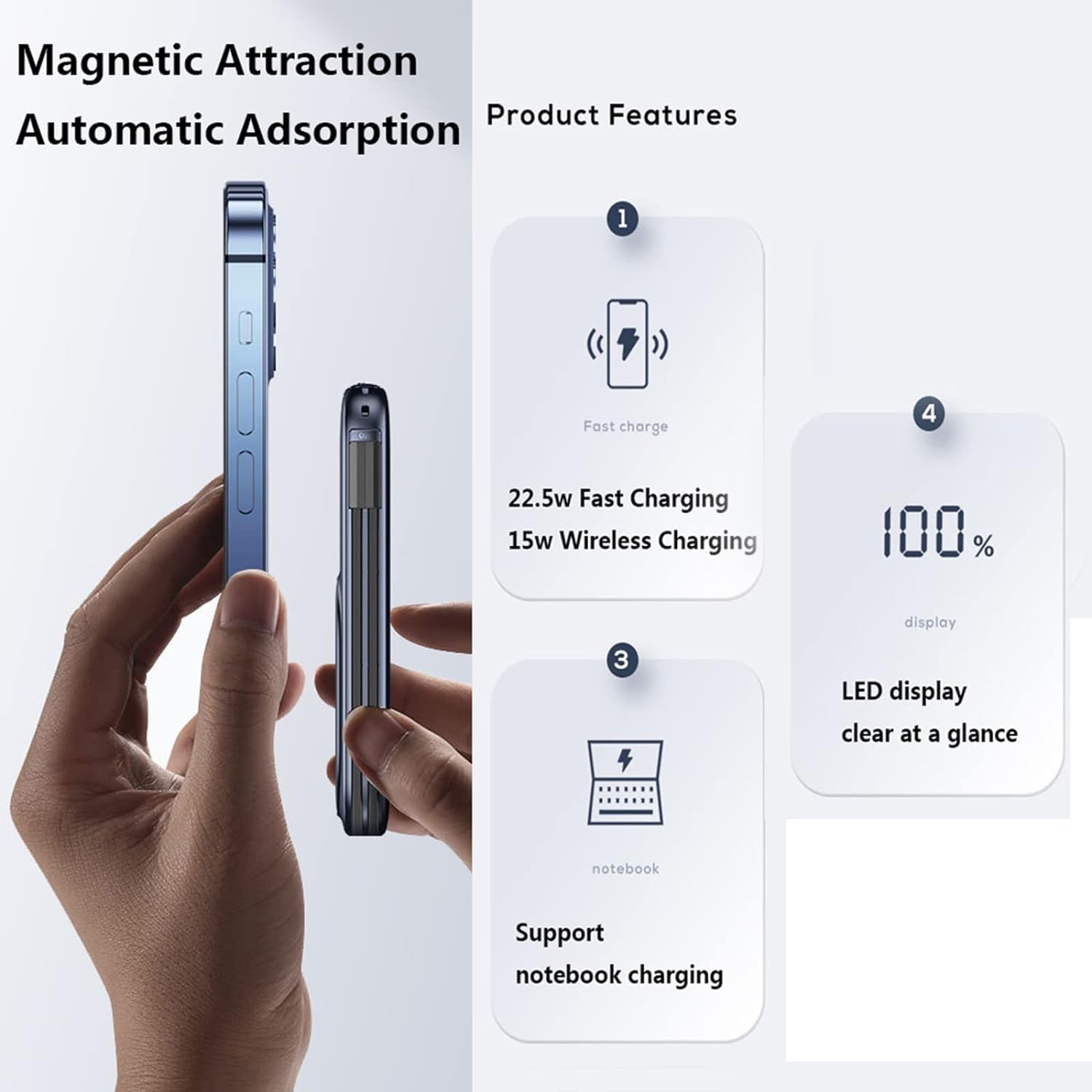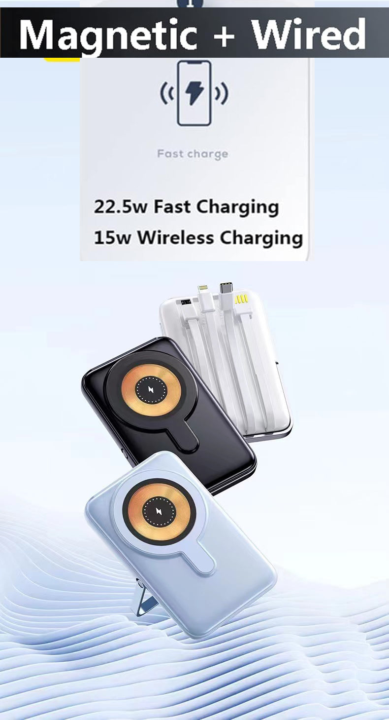 - Wired + Wireless 2 in 1: Wired mode: Type-C input/output PD 20W, Lighting Input 12W. Wireless mode: 15W magnetic wireless charging, compatible with 99% mobile phones/products with wireless charging (products that do not support magnetic suction need to purchase matching magnetic suction shell/magnetic suction module)